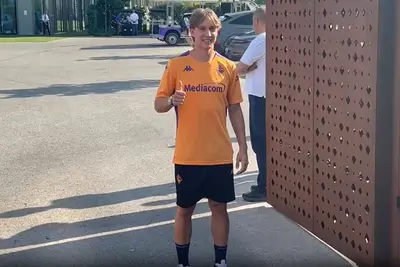 Il centrocampista della Fiorentina Jacopo Fazzini, nuovo acquisto del club viola che arriva dall'Empoli, è da poco giunto al Viola Park per...