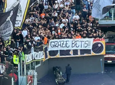 FOTO - I tifosi juventini ringraziano il Real Betis per aver eliminato la Fiorentina in Conference con uno striscione