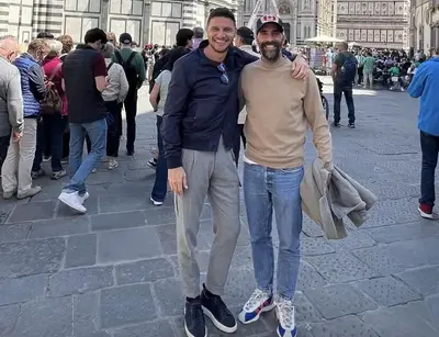 FOTO: Due vecchi amici viola si ritrovano in Piazza Duomo prima di Fiorentina-Betis