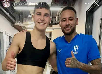 Neymar torna in campo a un anno dalla rottura del crociato...e incontra Gino Infantino - FOTO