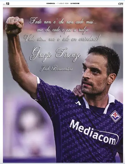 La Nazione: Bonaventura acquista una pagina per dire GRAZIE ai tifosi viola