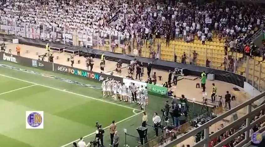 ATENE - Il presidente della Fiorentina, Rocco Commisso, a poco di più di un'ora dall'inizio della partita si è recato sotto il settore occupato dai tifosi viola.