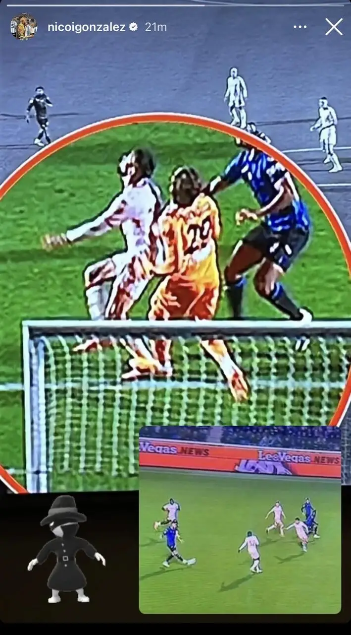 L'attaccante argentino della Fiorentina Nicolas Gonzalez ha da poco postato su Instagram una storia in cui mostra il fotogramma del pestone subito da Carnesecchi nell'area atalantina nel primo tempo della partita di ieri in Coppa Italia, seguita dal fotogramma del presunto fuorigioco di Lookman.