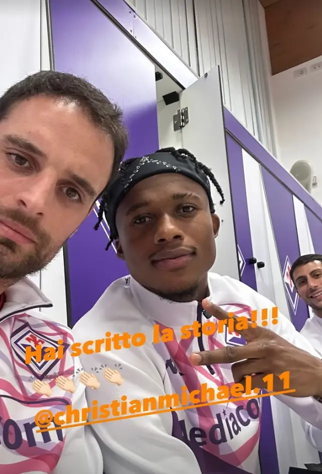 Una foto dei due nello spogliatoio della Fiorentina, con sotto la frase del numero 5 viola per il compagno: “Hai scritto la storia!”. Si tratta del primo trofeo continentale per Kouamé.