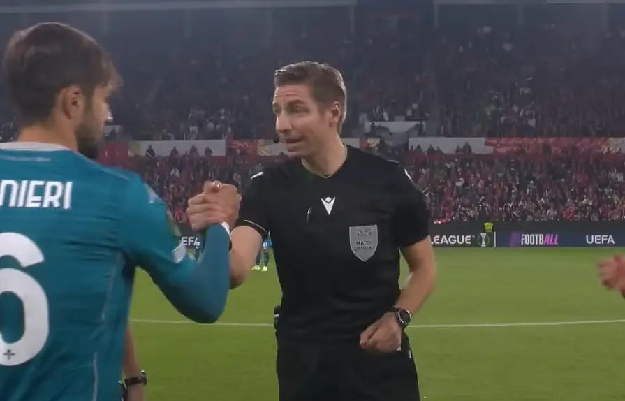 Una partita ruvida ma semplice da arbitrare per Visser, arbitro belga con già buona esperienza europea. Il direttore di gara gestisce bene la gara, tenendo sotto controllo tutto nel primo tempo e aiutandosi con i cartellini gialli nel secondo.