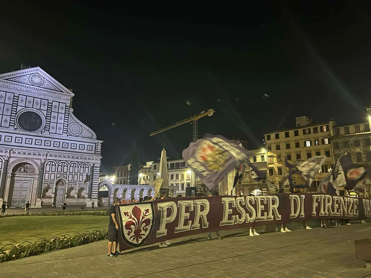 Home / News VIDEO - Cori, striscioni e fuochi d'artificio per i 99 anni della Fiorentina Niccolò Masini / 26 August 2025, 00:20 Twitter Facebook Whatsapp Telegram Email Tanti auguri Fiorentina! Il club viola compie oggi 99 anni e i tifosi della Curva Fiesole e non solo hanno festeggiato in piazza Santa Maria Novella con cori, fuochi d'artificio e striscioni. Fiorentinanews.com era presente: guardate che festa! Il VIDEO Notizie correlate Il compleanno della Fiorentina è alle porte. Stasera festa in centro a Firenze: i dettagli 💬 Commenti (15) Twitter Facebook Whatsapp Telegram Email Condividi Commenta