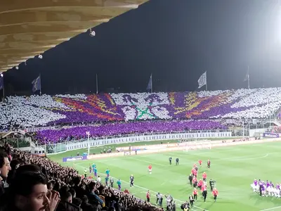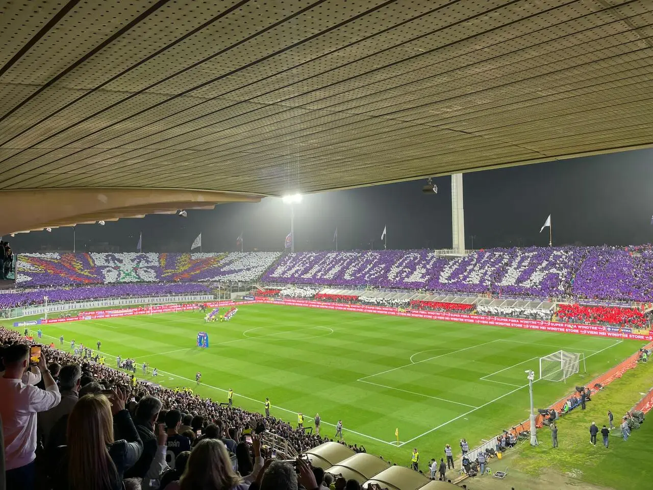 La Curva Fiesole: "Nella coreografia due rondini, simbolo di libertà, con in bocca il giglio di Firenze. Una metafora indissolubile che lega l’essere fiorentini all’eternità"
