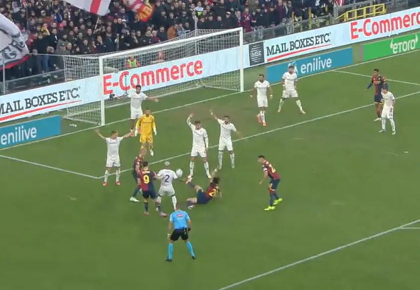 Pochi istanti dopo il gol di Piccoli, l'attaccante del Grifone, che in precedenza si era fatto parare un rigore da De Geaha segnato da terra un gol a dir poco rocambolesco. Il portiere viola esce a vuoto, la palla vaga in area e dopo diversi tocchi carambola su Colombo che è a terra, l'attaccante genoano d'istinto calcia da sdraiato e segna.