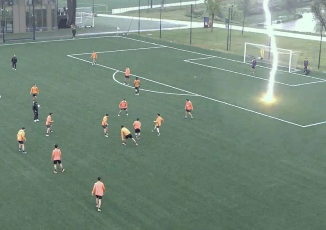 A seguito della caduta del fulmine due atleti sono finiti a terra sul terreno di gioco, storditi. Questo il video pubblicato da La Repubblica.