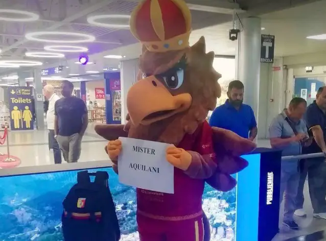 Aquilani è arrivato in Calabria per cominciare definitivamente la nuova avventura con il Catanzaro. Ad accoglierlo c'era… la mascotte del club, un'aquila stilizzata che lo aspettava con un cartello.