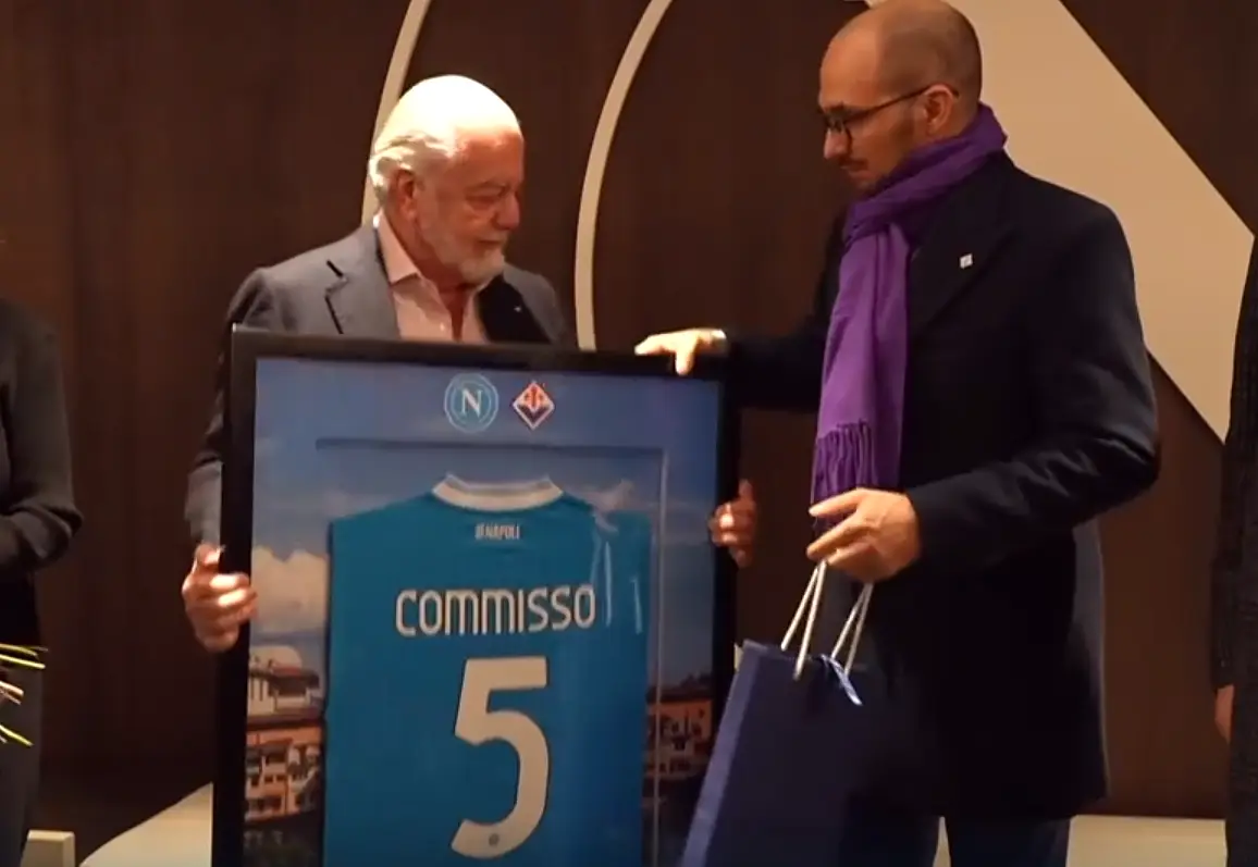 Il patron del Napoli ha voluto ricordare Commisso regalando ai suoi familiari una maglia del Napoli con il numero cinque e il cognome del presidente da poco deceduto. Un gesto semplice e di vicinanza al di là delle rivalità sportive.