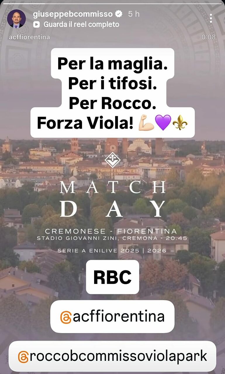 A poche ore dalla sfida contro la Cremonese, si è fatto sentire anche il presidente della Fiorentina Giuseppe Commisso, che dagli States ha pubblicato una stories sul proprio profilo Instagram.