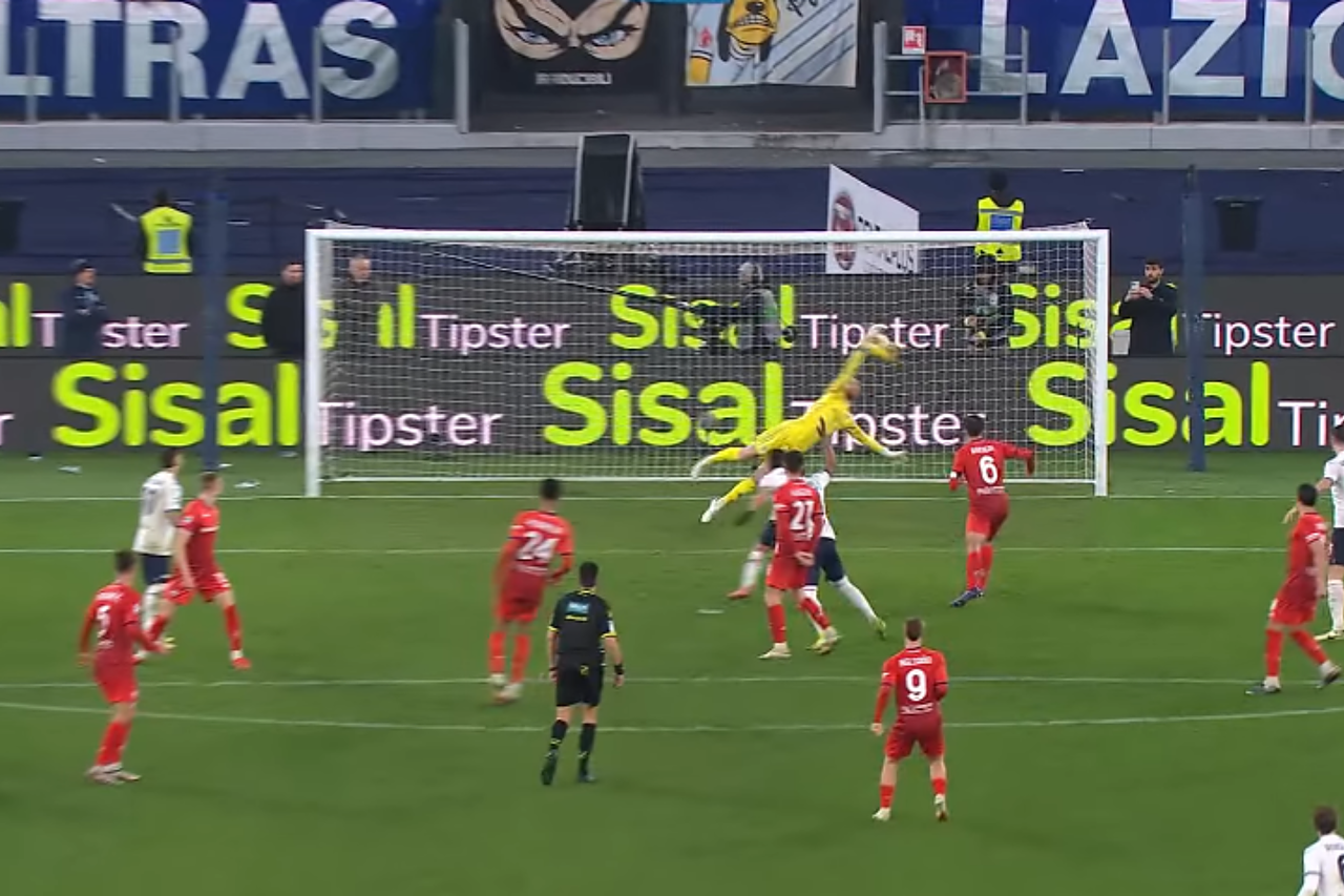 Una delle tante imprese della Fiorentina di Palladino porta anche la firma di De Gea. È il minuto 95 quando Marusic, che poco prima aveva dimezzato lo svantaggio, scaglia un destro dal limite dell’area indirizzato nell’angolo lontano. De Gea, nonostante la visuale disturbata, si distende sulla sua sinistra e con la mano di richiamo devia il pallone in calcio d’angolo. Una parata superlativa che, insieme al clamoroso palo interno colpito qualche istante più tardi da Pedro, risulterà decisiva per la vittoria viola all’Olimpico.