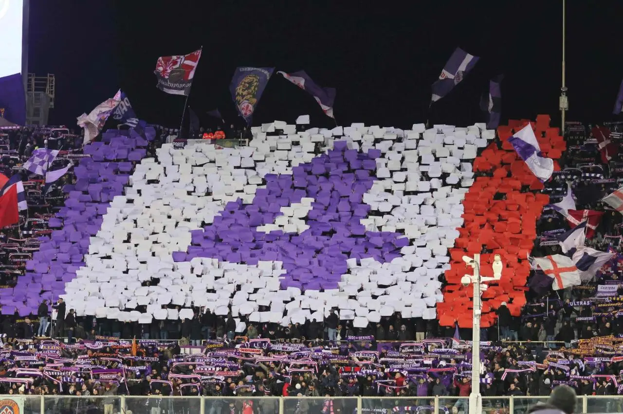 Una serata all'insegna del QUATTRO e di tante emozioni. FOTO FN: Lo striscione e la coreografia per Bove