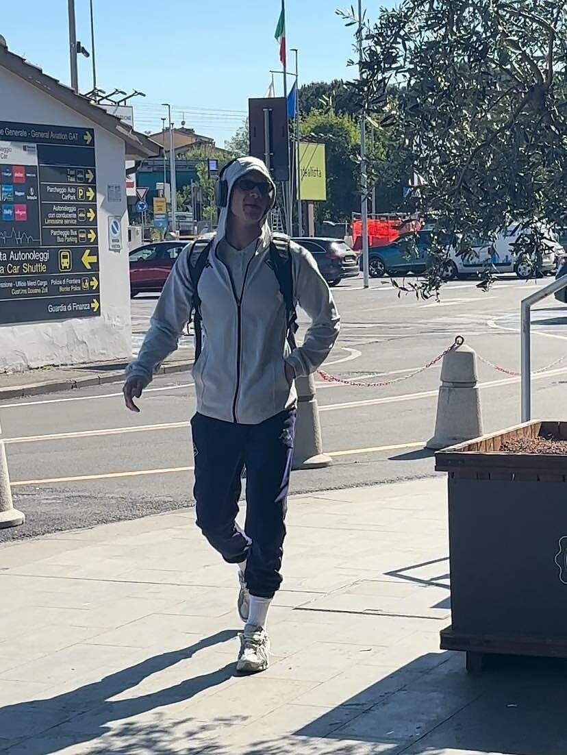 I giocatori viola, l'allenatore Vanoli e il suo staff, così come il ds Fabio Paratici, si sono recati a Peretola per prendere il volo che li porterà nel Regno Unito. Nella foto sotto un Oliver Christensen apparso molto sereno e sorridente, arrivando quasi a ritmo di musica.