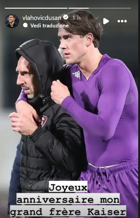 Ed è proprio quando Vlahovic giocava a Firenze che lo faceva insieme ad un grande campione passato per il capoluogo toscano. Franck Ribery, che oggi compie 41 anni, è stato ricordato proprio da Vlahovic, che su Instagram ha postato uno scatto dei due insieme, ai tempi di Firenze (quando il francese era tornato con la Salernitana).