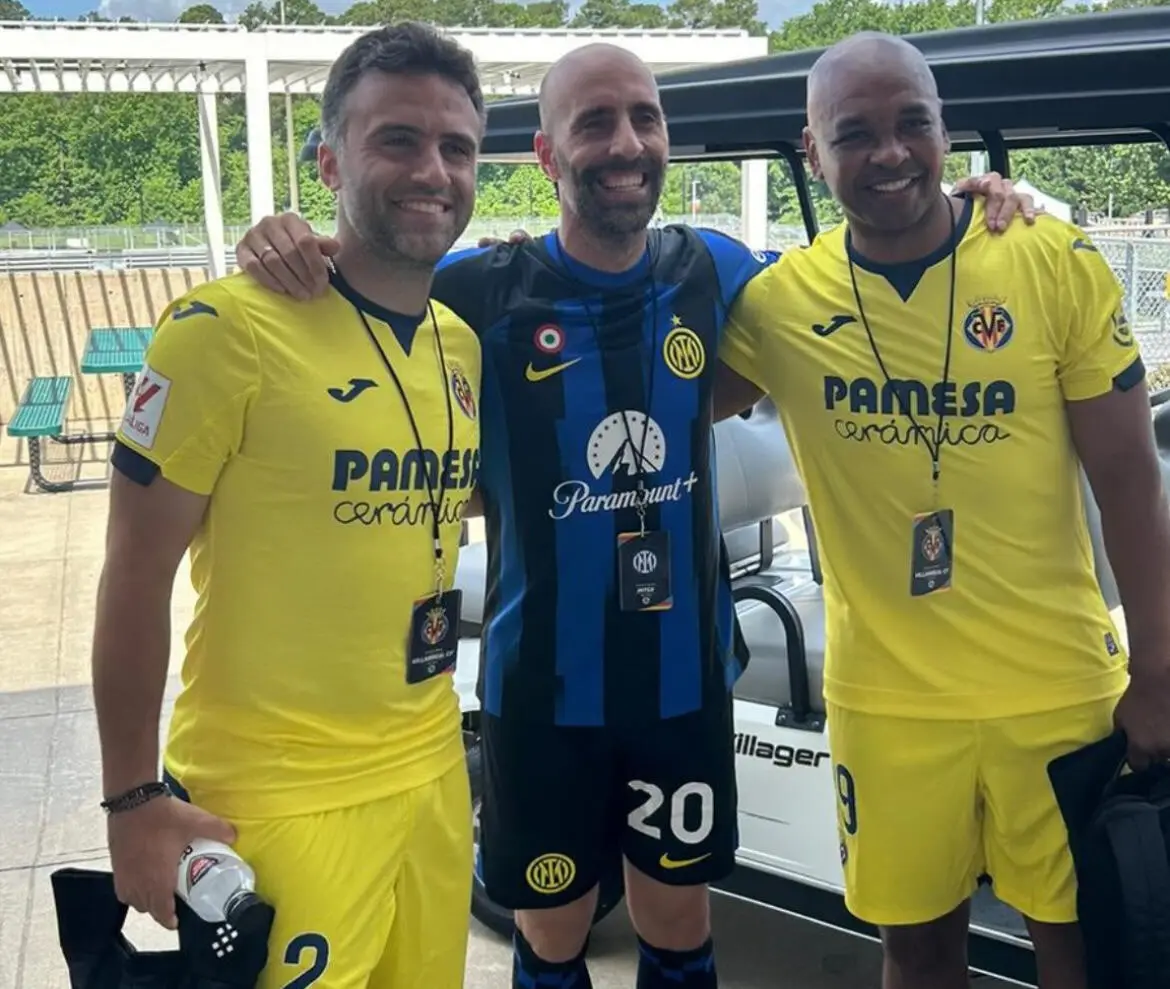 Eccoli insieme abbracciati in foto, insieme anche all’ex Villarreal Marcos Senna: