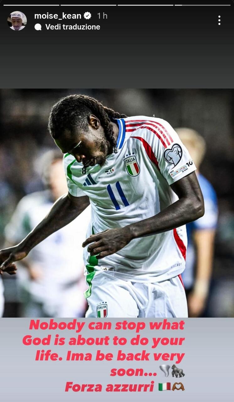 Dopo il suo rientro a Firenze a causa dell'infortunio alla caviglia, Moise Kean ha scritto un messaggio sui propri social per incoraggiare i compagni azzurri.