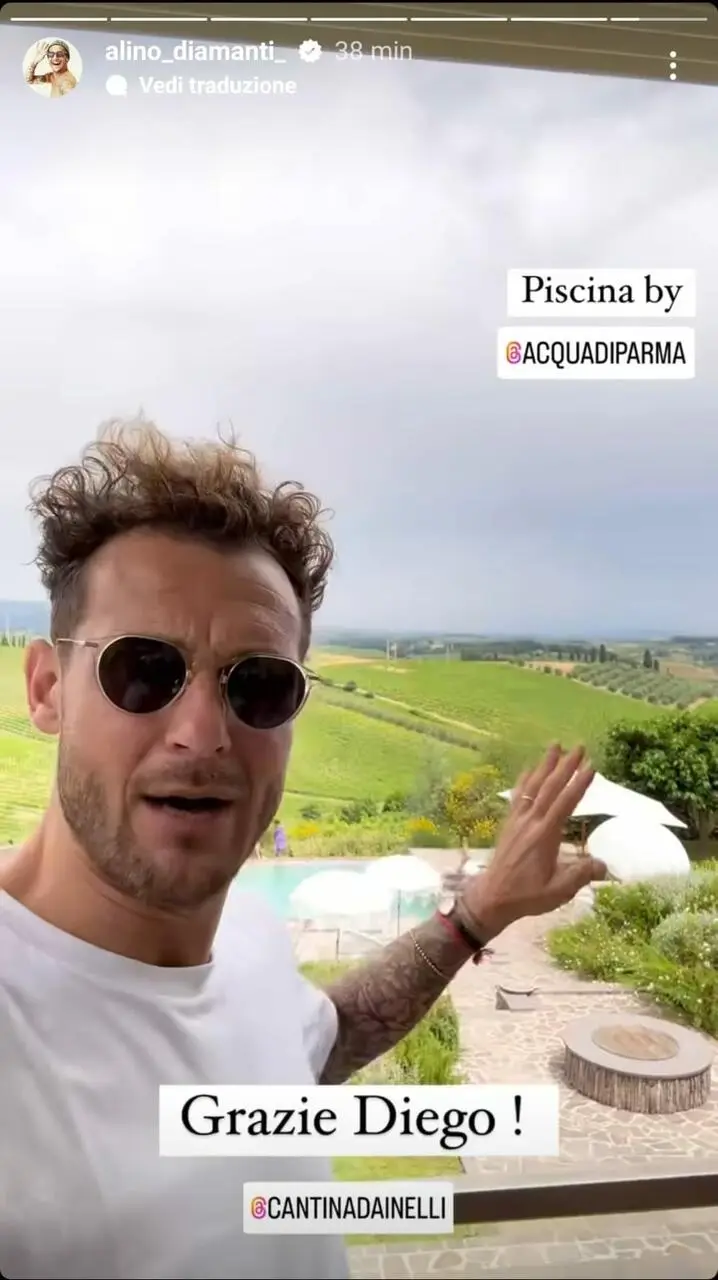 Dainelli festeggia il compleanno tra il verde delle colline toscane e una meravigliosa piscina. Diamanti scherza: "Vogliamo ringraziare Diego Della Valle"