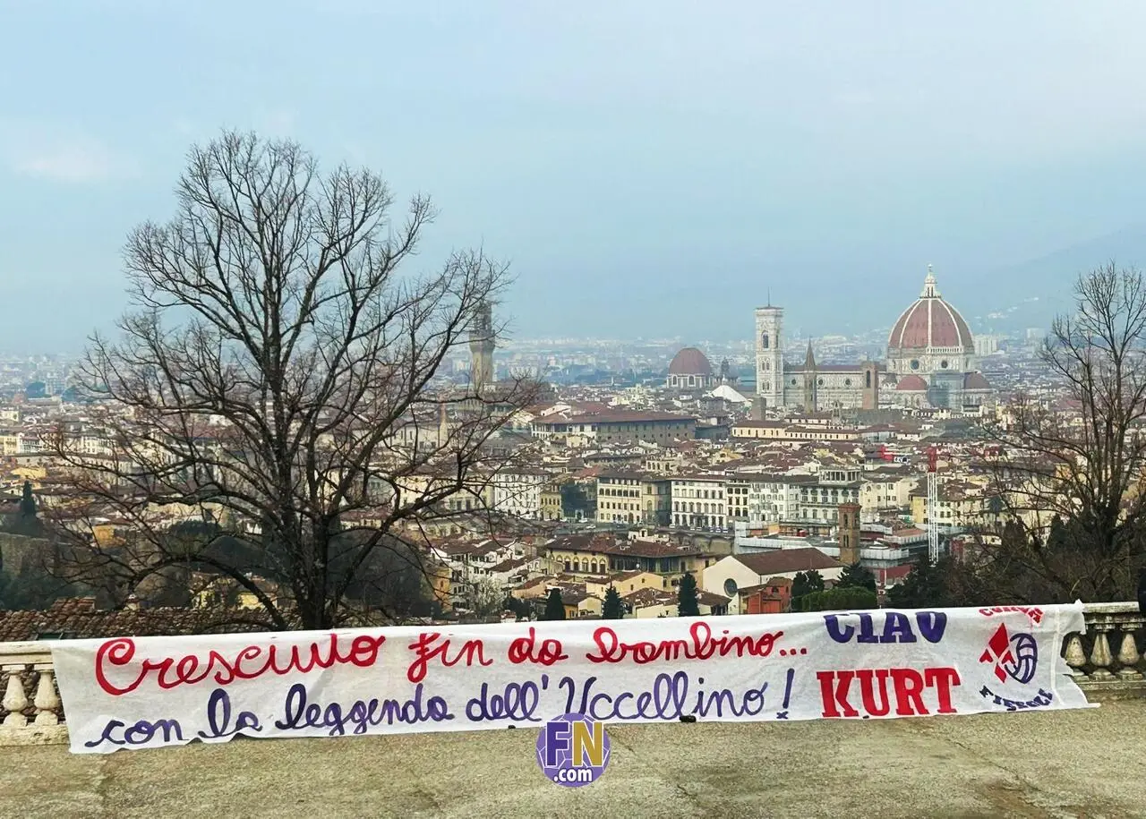 FOTO FN: Lo striscione della Curva Fiesole dedicato ad Hamrin e messo in uno dei posti più belli di Firenze