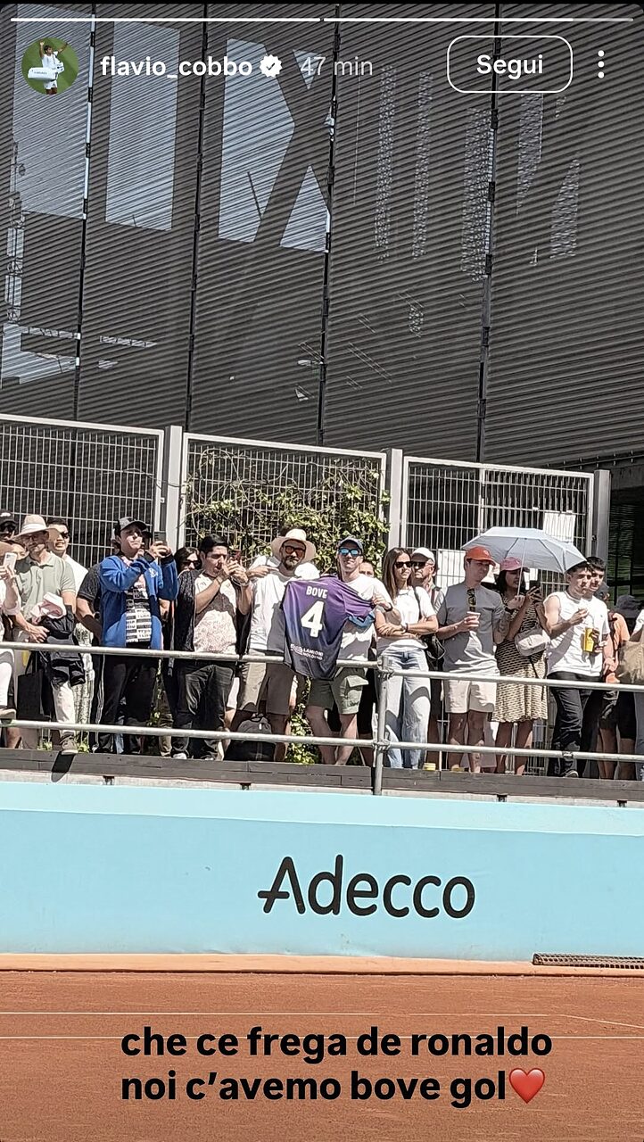 “Che ce frega de Ronaldo noi c'avemo Bove gol”, la simpatica didascalia che accompagna la foto. Sintomo di un legame sì con Edoardo, ma anche con la città e la squadra, attestato anche dal giglio che Cobolli ha tatuato sulla schiena.