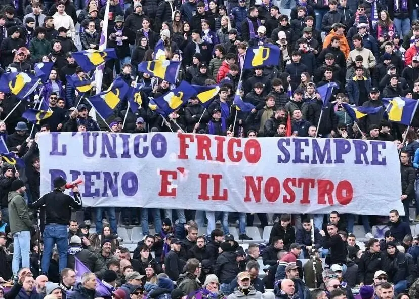 Un piccolo ma significativo messaggio quello esposto in uno striscione subito prima del calcio d'inizio di Fiorentina-Frosinone in Curva Fiesole: “L'unico frigo sempre pieno è il nostro”.